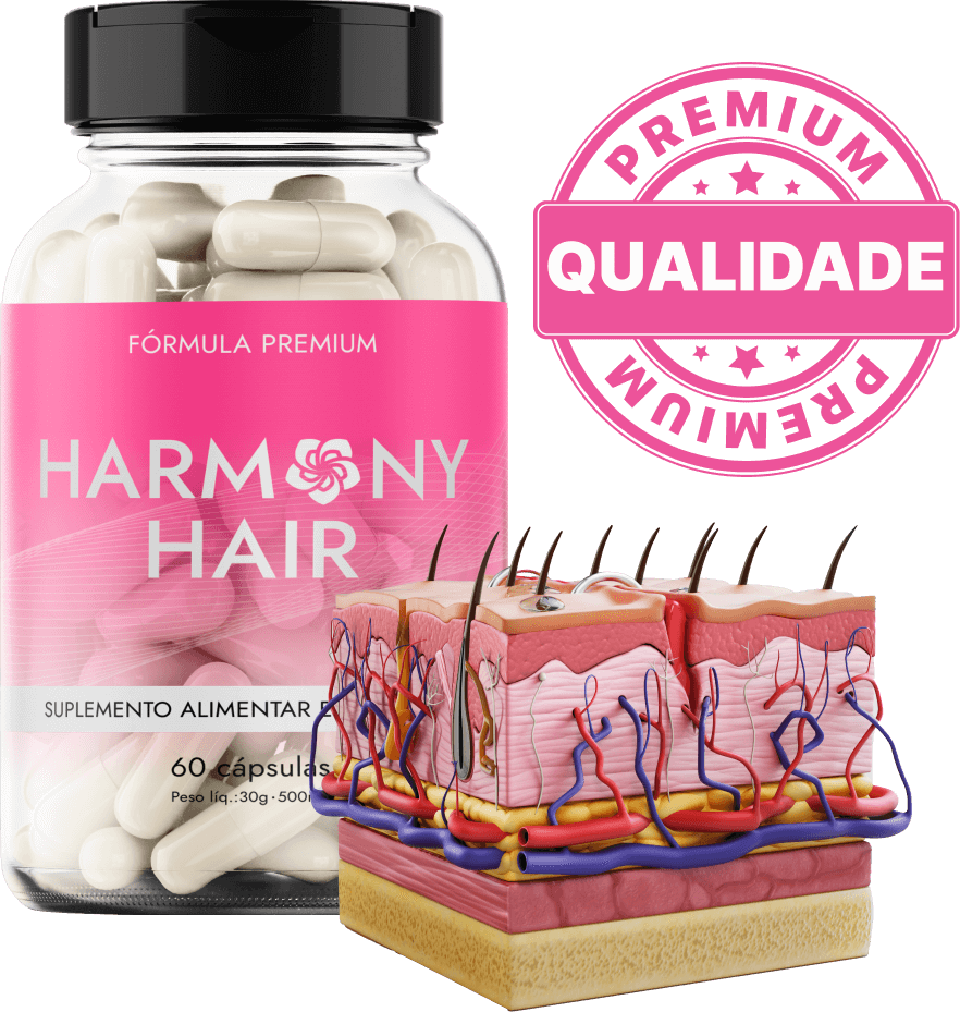 Harmony Hair é diferente de tudo que você já utilizou antes, isso porque é a primeira vez que a ciência consegue juntar tantos ativos poderosos em uma só composição: Ácido Pantotênico + Biotina + Ácido Fólico + Vitaminas.